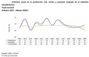En febrero la producción real de la industria manufacturera presentó una variación de 1,4%, las ventas…