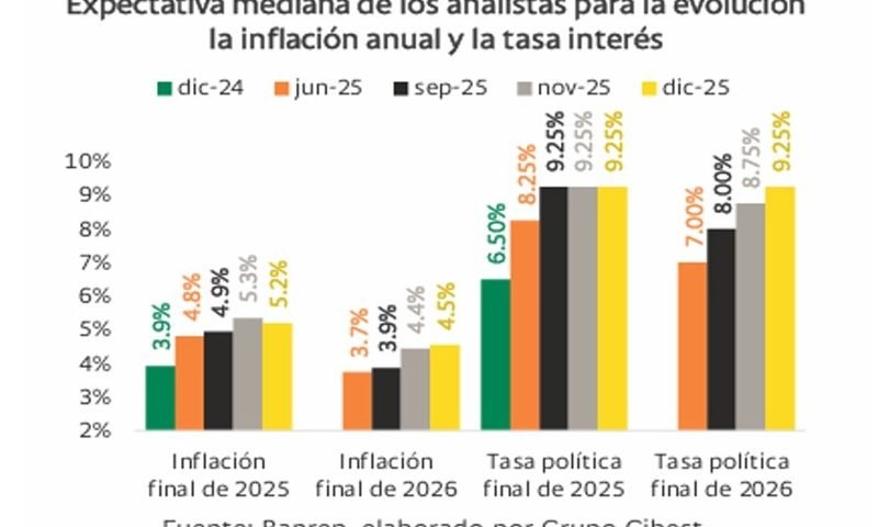 7 de enero de 2026(Investigaciones económicas Bancolombia).- Anticipamos que la inflación mensual de diciembre sería de 0,41%, por lo que la variación anual se desaceleraría en 5 puntos básicos (pb) hasta 5,26%. De materializarse este resultado, la inflación anual permanecería por tercer mes consecutivo en un nivel superior al del cierre de 2024. Nuestra estimación supera en 6 pb el promedio de los analistas encuestados por el Banco de la República en la Encuesta Mensual de Expectativas Económicas (0,35%) e incorpora un avance anual en los rubros de bienes y servicios.