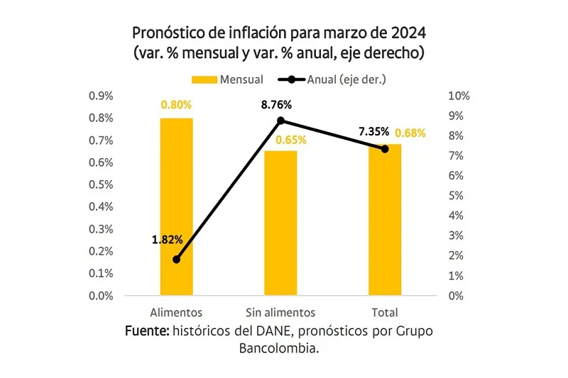 (Investigaciones económica Bancolombia).- Prevemos que, fruto de un avance mensual de 0,68%, la inflación anual caería hasta 7,35%…