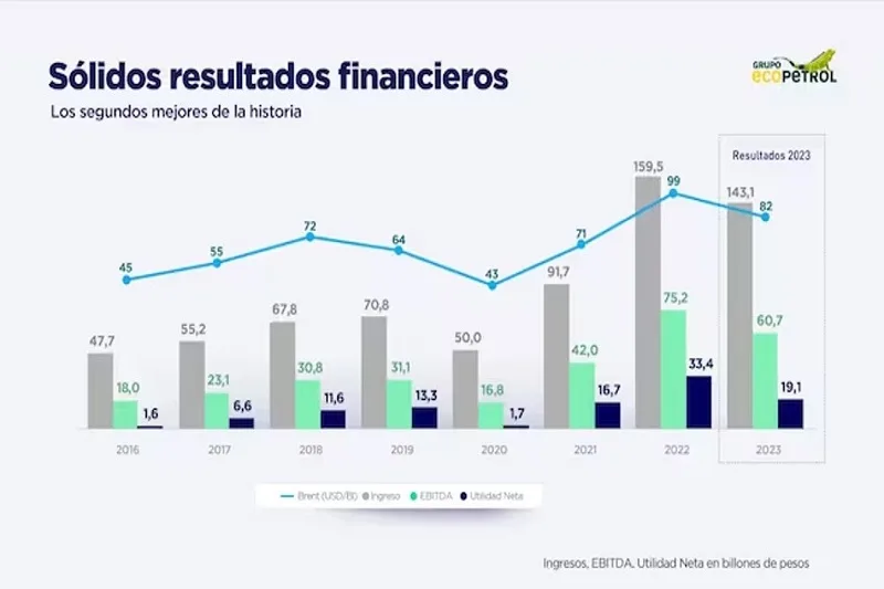 (Reuters) -La utilidad neta del conglomerado energético colombiano Ecopetrol se contrajo un 42,9% interanual en el 2023 a…