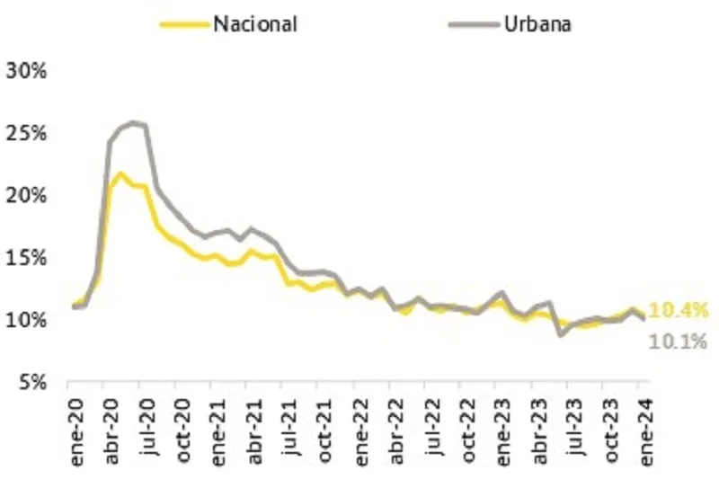 En medio del bajo crecimiento económico, el desempleo disminuyó 0,4pp hasta 10,4% en enero