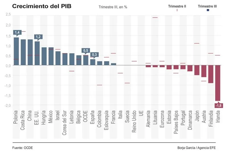 (EFE).- El producto interno bruto (PIB) de la OCDE creció un 0.4% en el cuarto trimestre de 2023 con una…
