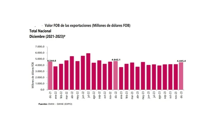 En 2023 el valor de las exportaciones colombianas cayó cerca de 13%