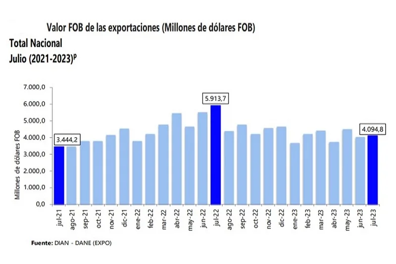 (Reuters) – El valor de las exportaciones de Colombia se desplomó un 30,8% interanual en julio a 4.094,8…