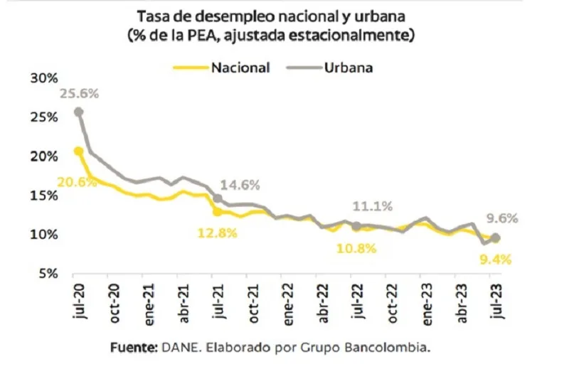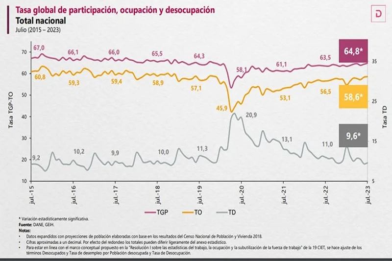 (Agencias).- La tasa de desempleo en Colombia se situó en julio en el 9,6%, lo que supone un…