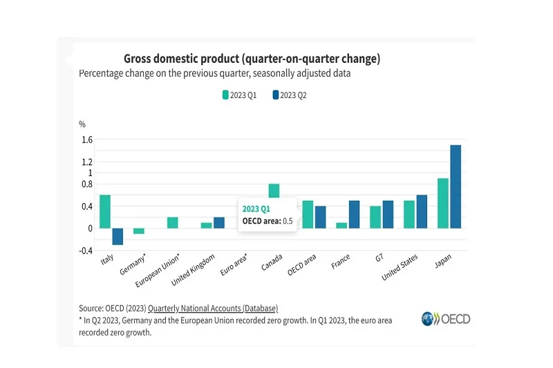 El crecimiento del PIB en la OCDE se ralentiza en el segundo trimestre con un 0,4%