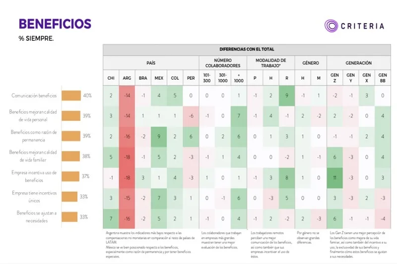 El beneficio de protección es el más importante para trabajadores de Argentina, Colombia, Brasil, Chile, México y Perú,…