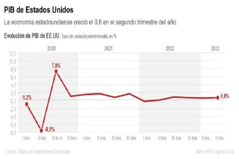 (EFE).- La economía estadounidense registró en el segundo trimestre del año un crecimiento del 0,6 % con respecto…