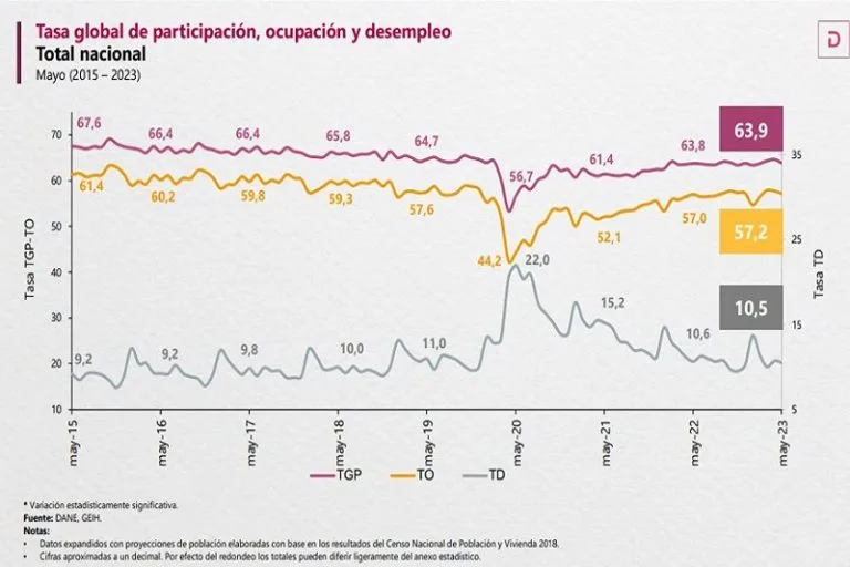 (Agencias).- La tasa de desempleo en Colombia se situó en mayo en el 10,5 %, lo que supone…