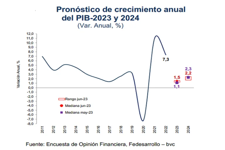 En junio, el pronóstico de crecimiento económico para 2023 se ubicó en un rango entre 1,2% y 1,6%,…