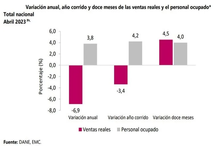 En abril de 2023, las ventas reales del comercio minorista decrecieron 6,9% y el personal ocupado creció 3,8%…