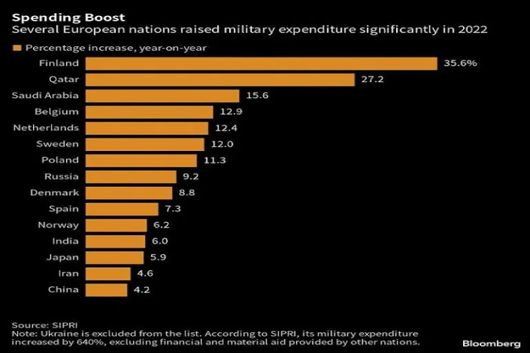 (Bloomberg) — El gasto militar mundial alcanzó un récord el año pasado, impulsado por un cambio de política…