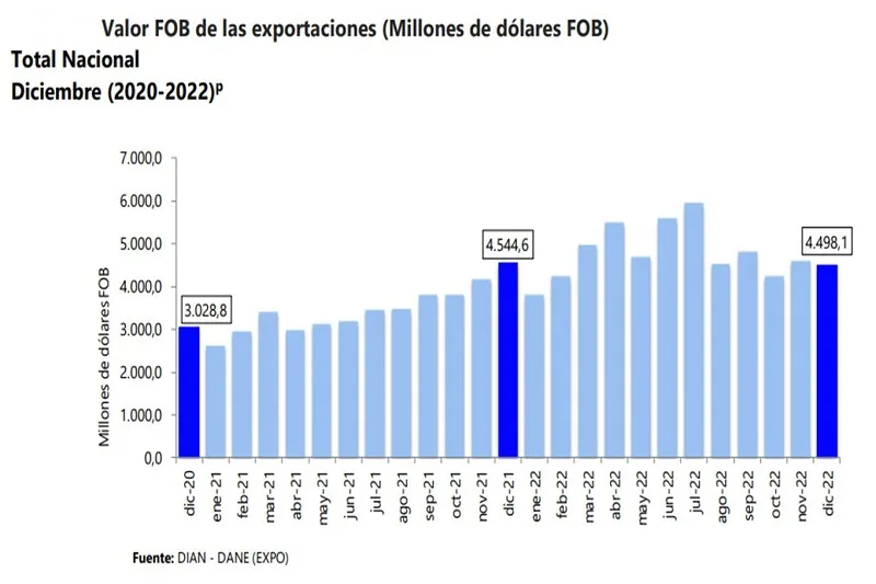 En el periodo enero-diciembre 2022, las exportaciones colombianas fueron US$ 57.115,4 millones FOB y registraron un aumento de…