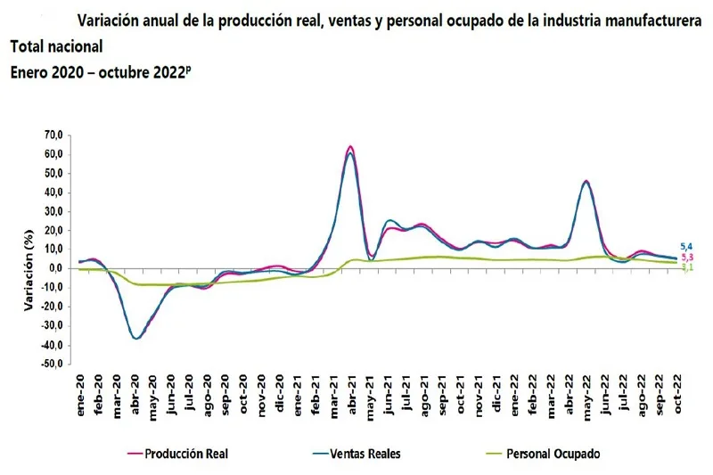 En octubre de 2022 frente al mismo mes de 2021, la producción real de la industria manufacturera presentó…