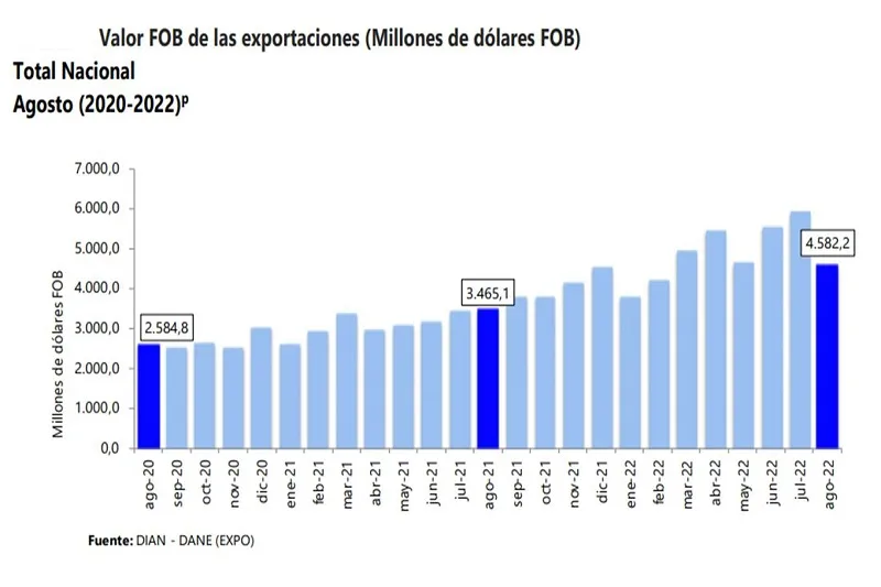 (Reuters) – El valor de las exportaciones de Colombia subió un 32,2% en agosto a 4.582,2 millones de…
