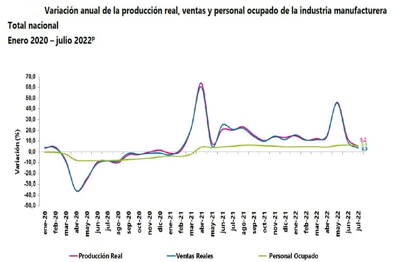 En julio de 2022 frente a julio de 2021, la producción real de la industria manufacturera presentó una…