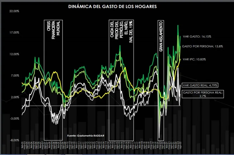 En agosto el gasto de los hogares en Colombia fue de $76,4 billones y en los últimos 12…