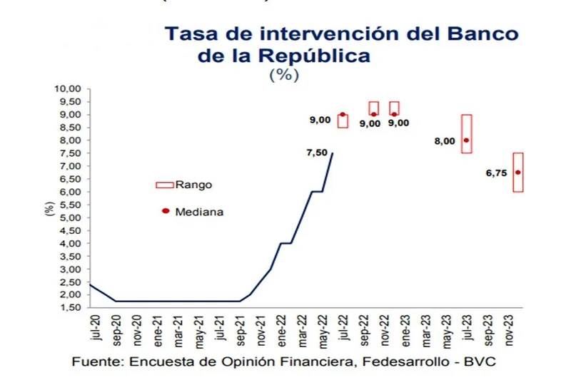 Para julio, los analistas consideran que la tasa de intervención del Banco de la República aumentará hasta ubicarse…