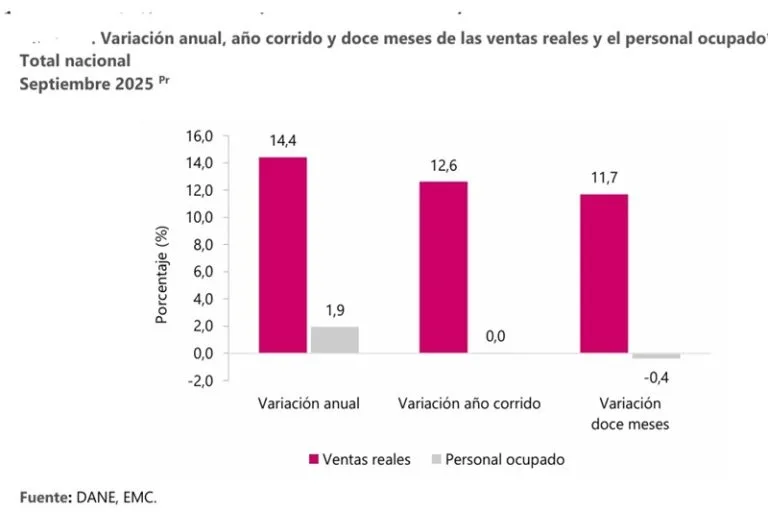 En septiembre de 2025, las ventas reales del comercio minorista aumentaron 14,4% y el personal ocupado creció 1,9%…