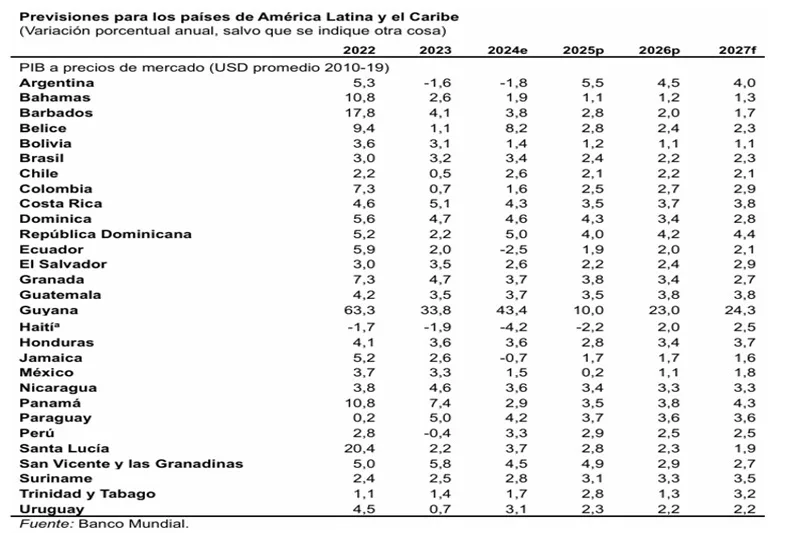 (EFE).- El Banco Mundial (BM) mantuvo este martes la previsión de crecimiento para América Latina y el Caribe…