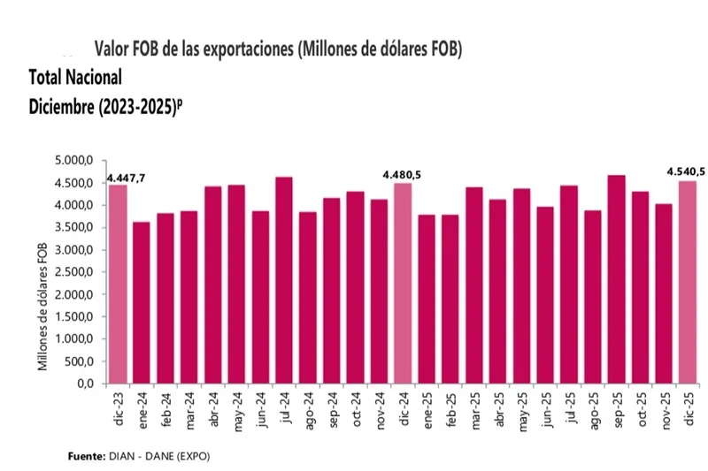 En 2025 el valor de las exportaciones colombianas creció 1,3%