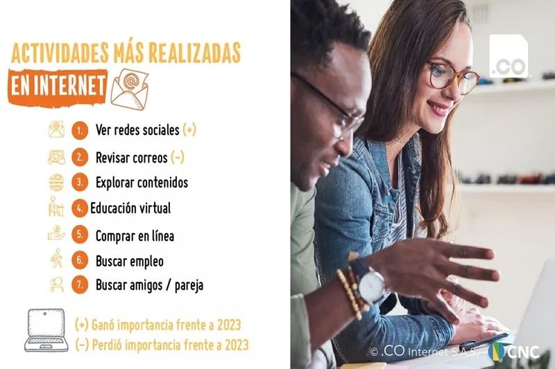 La actividad más realizada por los colombianos en internet en 2024 fue ver redes sociales, seguido de la…
