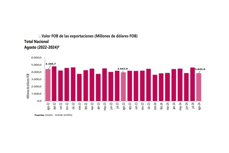 En agosto el valor de las exportaciones colombianos fue de US$3.845,0 millones FOB y presentó una disminución de…