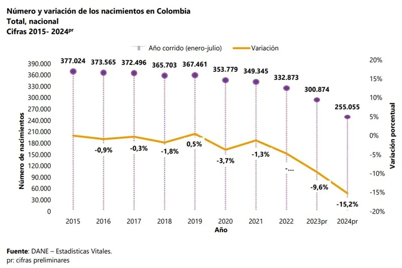 En lo corrido de 2024pr, el país alcanza la cifra más baja de nacimientos ocurridos entre el 1…