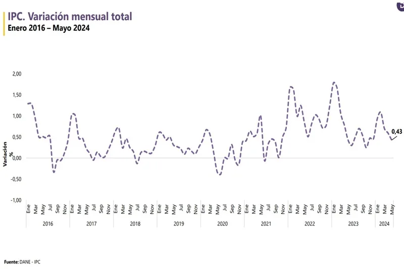 En mayo de 2024 la variación mensual del IPC fue 0,43%, la variación año corrido fue 3,78% y…