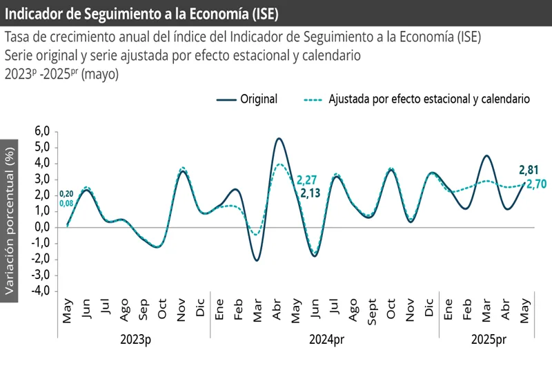 Entre enero y mayo el Indicador de Seguimiento a la Economía acumuló un alza de 2,44%, por encima del 1,80% en el mismo periodo del año pasado.