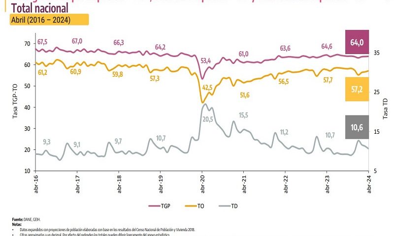 En abril de 2024, la tasa de desempleo en el total nacional fue del 10,6 %