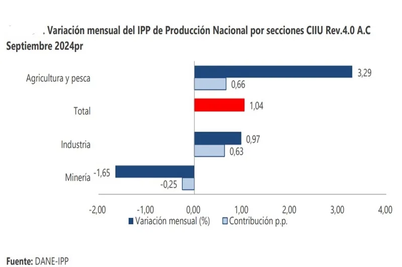 El IPP de la producción nacional, en septiembre presentó una variación de 1,04% respecto a agosto de 2024, informó el Dane.