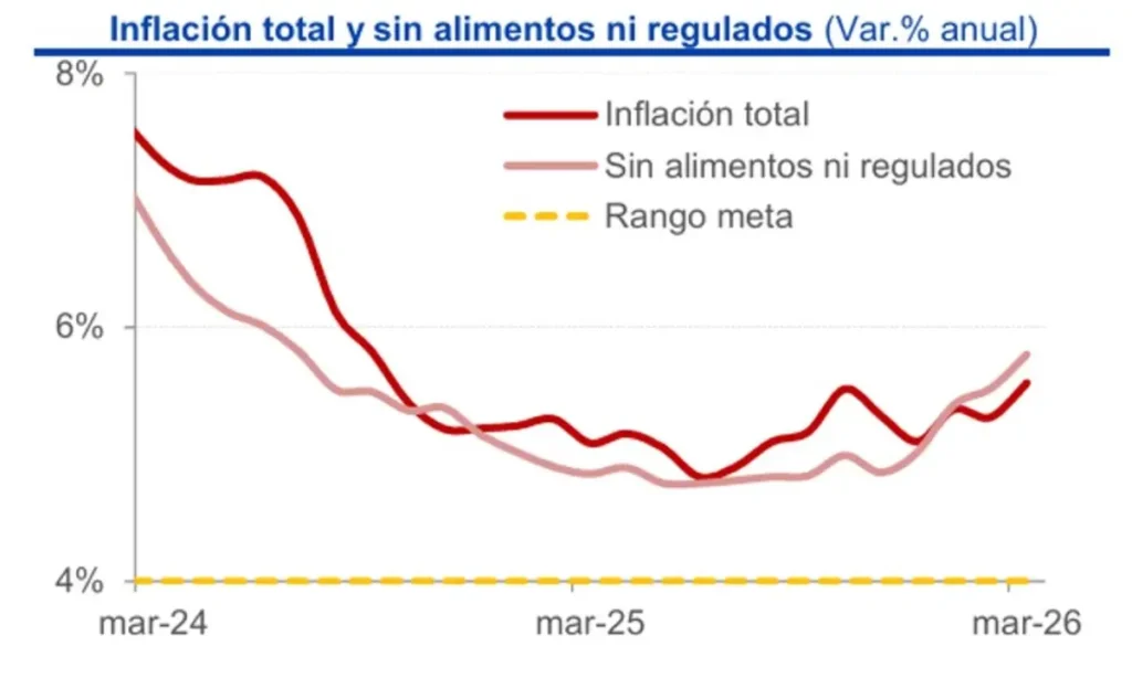 Las mediciones básicas de inflación también se aceleraron, confirmando la existencia de presiones de precios. En particular, la métrica sin alimentos ni regulados, preferida por el Banco de la República ascendió a 5.8% anual, frente a 5.5% del mes previo y 4.9% promedio en 2025.