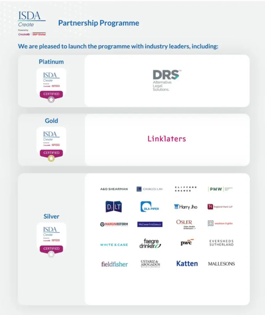 ISDA Create, fue creado entre la Asociación Internacional de Swaps y Derivados -ISDA – y el despacho legal Linklaters, buscando reducir drásticamente el tiempo para redactar y acordar documentos de operaciones con derivados y permitiendo el seguimiento del estado de las negociaciones y habilitando el acceso a datos legales.