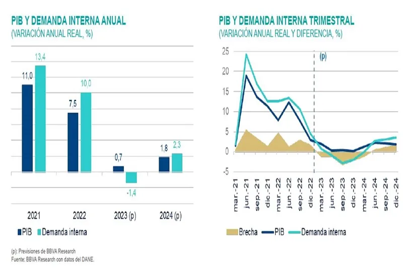 Economía colombiana crecería 0,7% en 2023 y 1,8% en 2024: BBVA