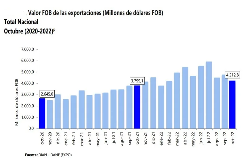 Valor de exportaciones de Colombia desacelera ritmo de crecimiento en octubre