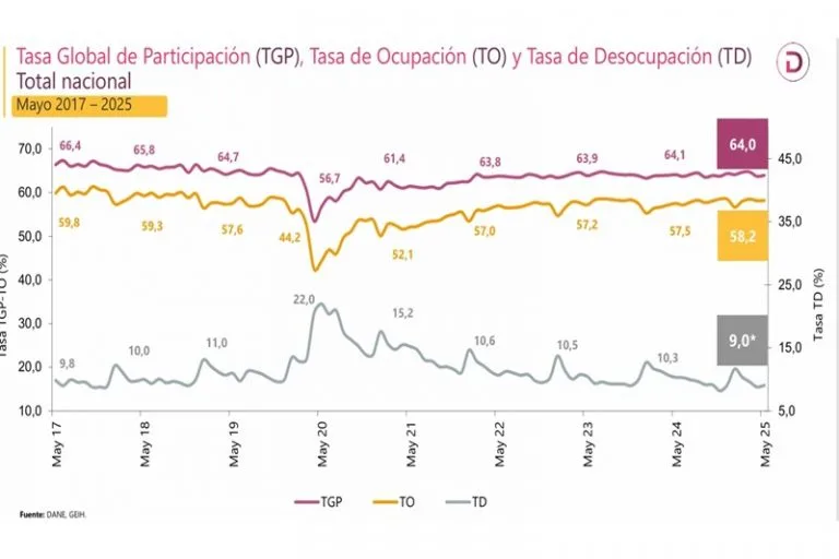 La Tasa de Desocupación (TD) para el total nacional en mayo de 2025 fue del 9,0%, lo que…