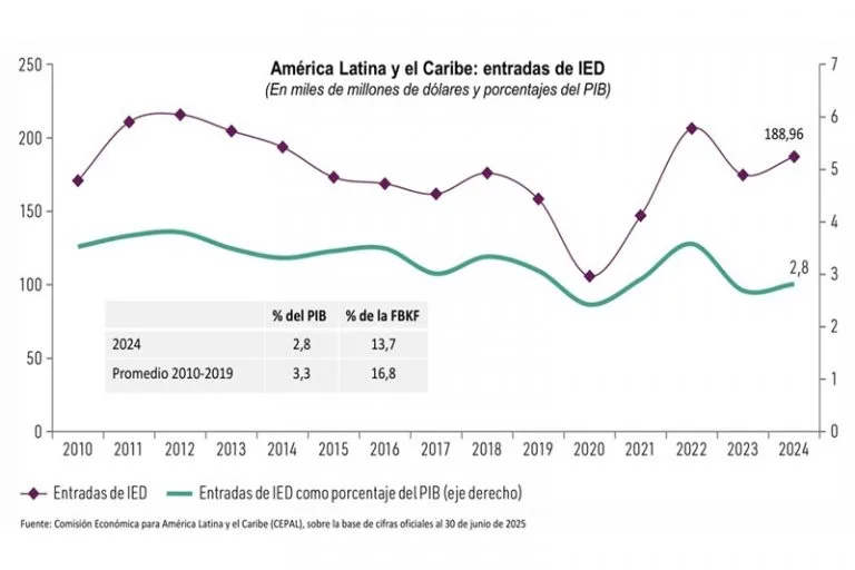 En 2024 las entradas de inversión extranjera directa (IED) en América Latina y el Caribe alcanzaron un total…