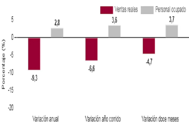 En septiembre de 2023, las ventas reales del comercio minorista decrecieron 9,3% y el personal ocupado creció 2,8%…