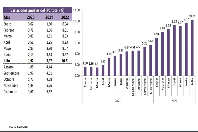 (EFE).- La inflación interanual de Colombia fue del 10,21 % en julio pasado, la cifra más alta desde…