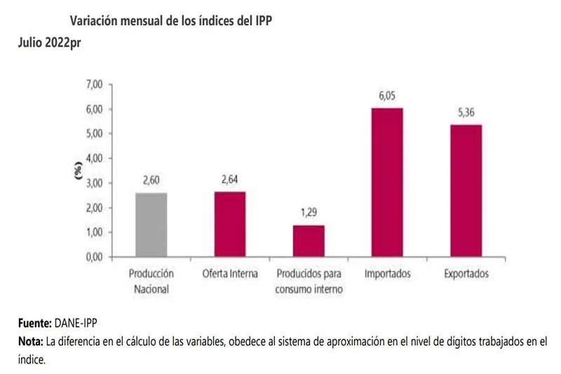 En julio el IPP presentó un aumento de 2,60%, según el Dane