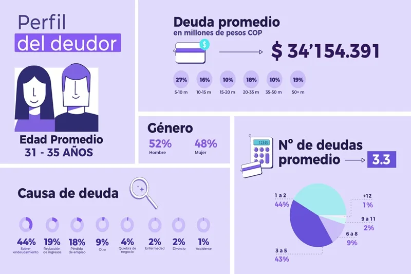 Más del 43% de los colombianos sobreendeudados acumula entre 3 y 5 obligaciones en mora para 2026