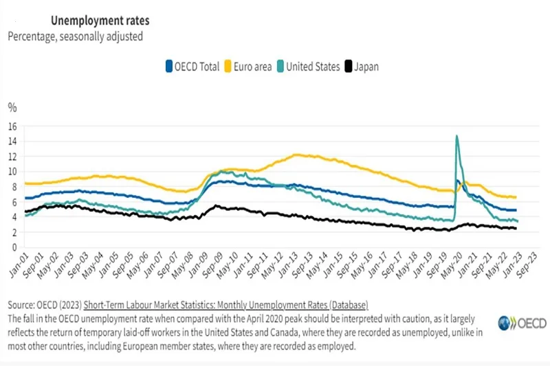 La tasa de desempleo de la OCDE se mantuvo estable en 4,9% en diciembre de 2022, el sexto…