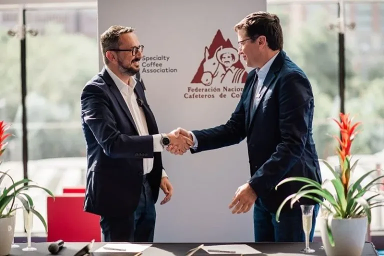 El Gerente General de la Federación Nacional de Cafeteros de Colombia (FNC), Germán Bahamón, junto a Vanúsia Nogueira,…