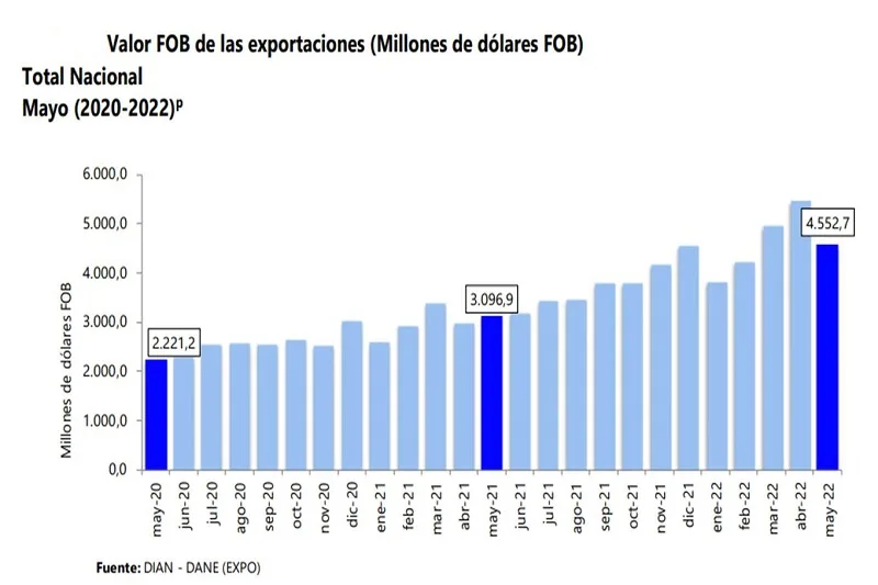 Valor de exportaciones de Colombia sube 32,2% en agosto