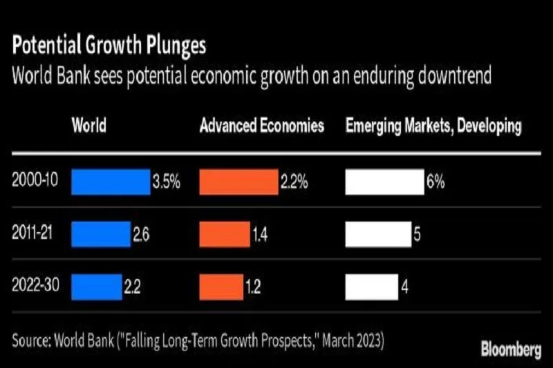 (Bloomberg) — El potencial crecimiento de la economía global hasta el final de la década se ha desacelerado…