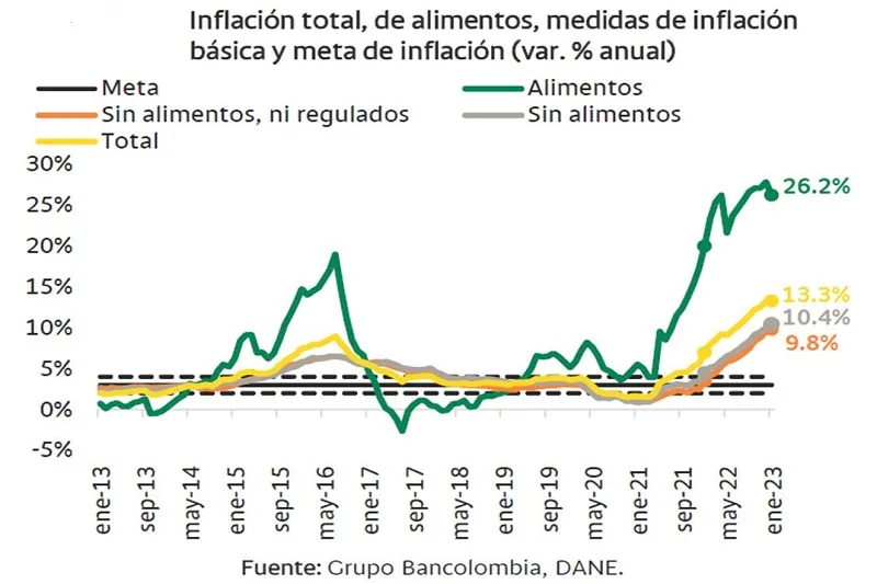 Las presiones de precios generalizadas llevaron a que la inflación iniciara el año en 13,25% (Investigaciones económicas Bancolombia).- El DANE reportó que el índice de precios al consumidor (IPC) presentó en enero de…