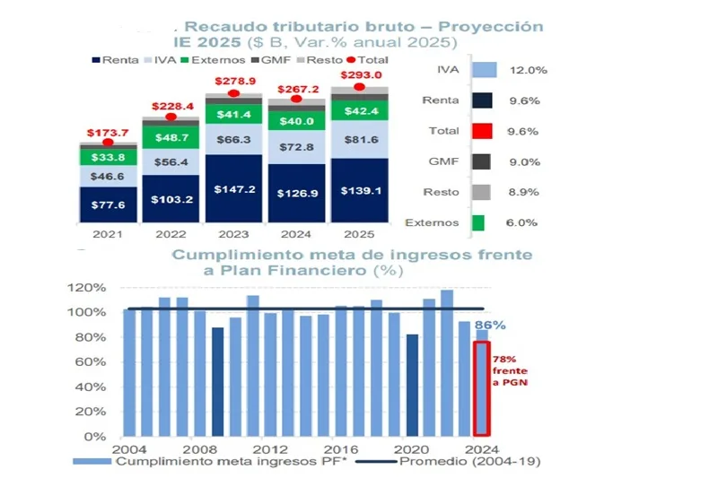 Recaudo neto de impuestos rondaría $279 billones en 2025, por debajo de meta del PGN