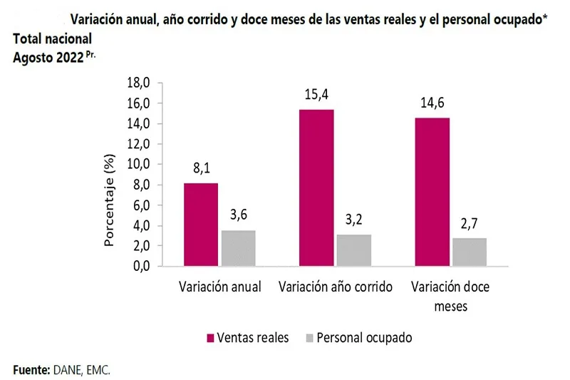 Las ventas reales del comercio minorista aumentaron 8,1% en agosto pasado y el personal ocupado creció 3,6% en…