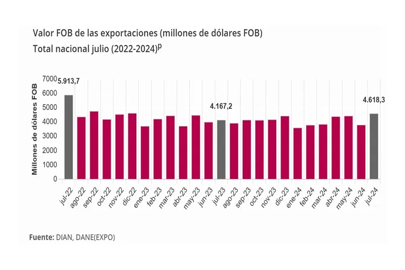 De acuerdo con la información de exportaciones procesada por el DANE y la DIAN, en julio de 2024…
